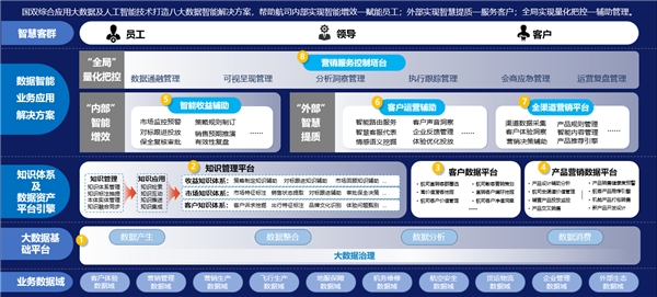 依托自主可控的企業(yè)級大數(shù)據(jù)平臺及在人工智能方面的技術(shù)積淀,國雙航旅行業(yè)數(shù)據(jù)智能解決方案基于航司和旅游企業(yè)特定的業(yè)務(wù)場景,以產(chǎn)業(yè)智能系統(tǒng)結(jié)合航司專家知識,打造八大數(shù)據(jù)智能解決方案:大數(shù)據(jù)基礎(chǔ)平臺解決方案、知識管理平臺解決方案、客戶數(shù)據(jù)平臺解決方案、產(chǎn)品營銷數(shù)據(jù)平臺解決方案、智能收益輔助解決方案、客戶運營輔助解決方案、全渠道營銷平臺解決方案、營銷服務(wù)控制塔臺解決方案,能夠有效助力航司企業(yè)數(shù)字化轉(zhuǎn)型,幫助航司內(nèi)部實現(xiàn)智能增效—賦能員工;外部實現(xiàn)智慧提質(zhì)—服務(wù)客戶;全局實現(xiàn)量化把控—輔助管理。