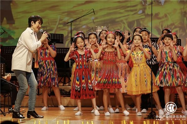 藝術(shù)家成方圓與身著美麗民族服裝的孩子們合唱《孤獨(dú)的牧羊人》