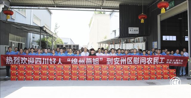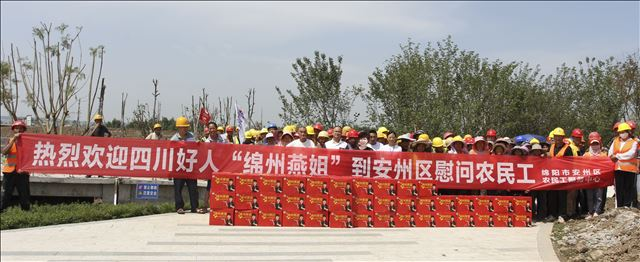 在看望慰問建設(shè)工地農(nóng)民工過程中,悠達(dá)之星旅游公司董事長(zhǎng)李鵬、企業(yè)接待人白剛明看到“綿州燕姐”腳疼得艱難挪動(dòng),就把“綿州燕姐”背上自己的轎車,將“綿州燕姐”送到要看望慰問的工地上。