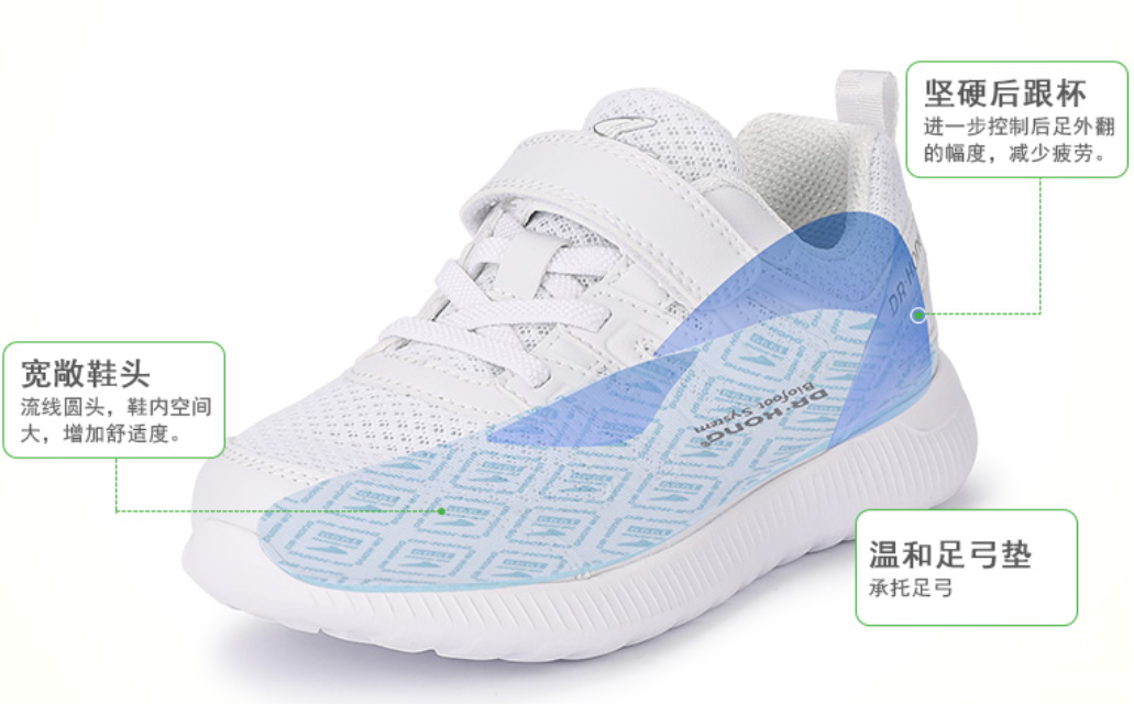 這款兒童運(yùn)動(dòng)鞋采用三維護(hù)足概念設(shè)計(jì),具有不同足弓承托幅度及后跟斜度的鞋墊,能根據(jù)不同足部情況,承托偏低足弓及使后跟保持垂直;堅(jiān)硬后跟杯,能起到穩(wěn)定后跟骨的作用,控制后足外翻幅度;而舒適的前足圍度,適合不同肥瘦腳形,增加舒適度。三維護(hù)足,讓寶寶的每一步都平穩(wěn)有力,有效緩解孩子走路的疲勞感。