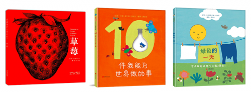 如《草莓》、《小種子快長大》等繪本讓大家看到詩意豐收的內容,一粒餐桌上的甘甜小草莓是如何生長的,這些都與人類的生活緊密聯(lián)系、息息相關、相互依存。而《綠色的一天》、《我能為世界做的10件小事》等繪本則用孩子們易于接受的視角,引導環(huán)保小衛(wèi)士身體力行,用自己的實際行動讓世界更美好!