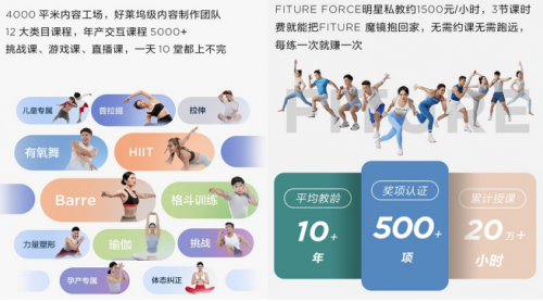 在自制內(nèi)容方面,F(xiàn)ITURE現(xiàn)已簽約近20位健身教練,組建了一個累計授課時長超20萬小時,平均教學(xué)經(jīng)驗10年以上,累計獎項認(rèn)證500多個的“FITURE FORCE全明星教練”。在對標(biāo)好萊塢影視制作規(guī)格來打造的“健身夢工場”,內(nèi)容團(tuán)隊可通過一個囊括教練、拍攝及后期、音樂、開發(fā)和AI的數(shù)字化“交互內(nèi)容創(chuàng)作管理系統(tǒng)”實現(xiàn)全年5000節(jié)健身課程內(nèi)容更新的產(chǎn)能。