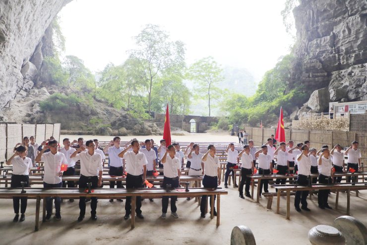 近日,龍馬公司第一、二黨支部、天巴高速項目黨支部及東蘭縣金谷鄉(xiāng)納立村黨支部聯(lián)建共建黨支部在紅色教育基地列寧巖、韋拔群紀念館開展“重走革命道路 賡續(xù)紅色血脈”主題黨日活動。
