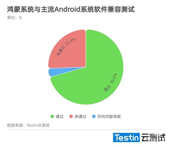 2、鴻蒙系統(tǒng)與市面上主流的Android系統(tǒng)軟件兼容測試結(jié)果中,通過率超過70%,但擁抱鴻蒙系統(tǒng)仍需第一時間關(guān)注兼容適配測試。
