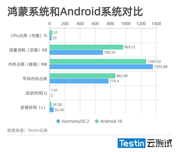 3、相同平臺和硬件的環(huán)境下,鴻蒙系統(tǒng)和Android系統(tǒng)對比相差不大