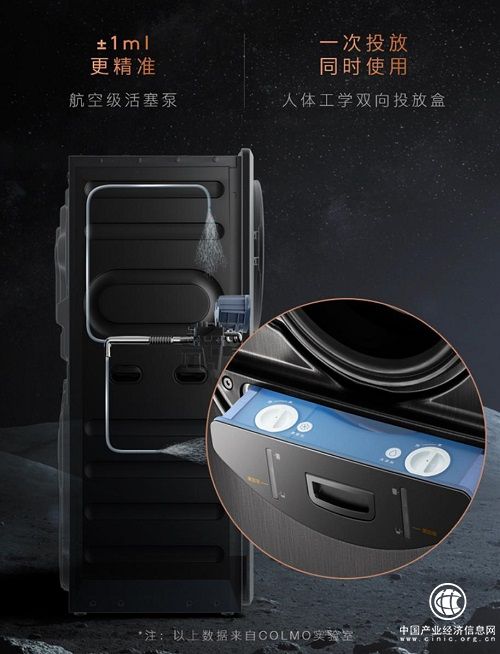 細(xì)節(jié)上,COLMO子母太空艙洗衣機(jī)也支持雙向智能投放功能。用戶只需在產(chǎn)品腰部的投放盒添加洗滌劑即可,一次投放上、下洗衣倉(cāng)可同時(shí)使用。配合航天級(jí)活塞泵、AI識(shí)水功能,COLMO子母太空艙洗衣機(jī)的洗滌劑投放量已精準(zhǔn)至±1ml,確保洗衣過(guò)程中更少的化學(xué)成分殘留。