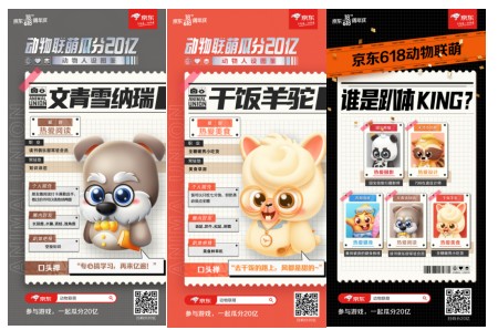 京東618“熱愛(ài)狂歡趴”配備創(chuàng)意化的故事背景,其中“動(dòng)物聯(lián)萌”的IP動(dòng)物設(shè)定也別具一格。35個(gè)小動(dòng)物性格迥異,有熱愛(ài)健身的弄潮海星、愛(ài)攝影的國(guó)寶熊貓、熱愛(ài)美食的干飯羊駝、熱愛(ài)閱讀的文青雪納瑞、熱愛(ài)設(shè)計(jì)的天才小浣熊等等。軟萌的形象設(shè)計(jì)和活潑俏皮的性格特點(diǎn)、霸氣宣言都成功激發(fā)用戶(hù)去曬、去分享給朋友們。