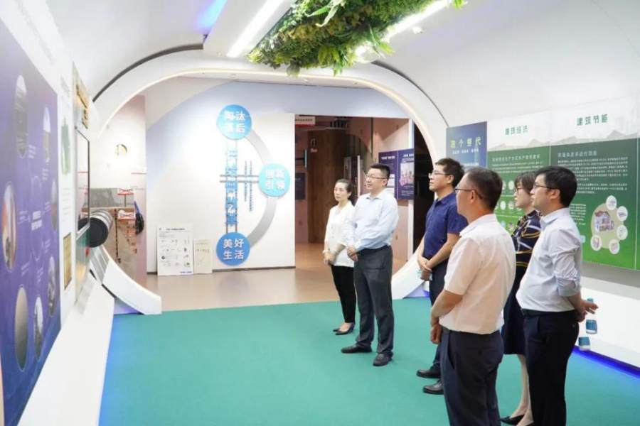 ▲天安門地區(qū)管委會(huì)副主任柴海泉、基建處處長(zhǎng)楊瑩參觀北新建材未來(lái)建筑館