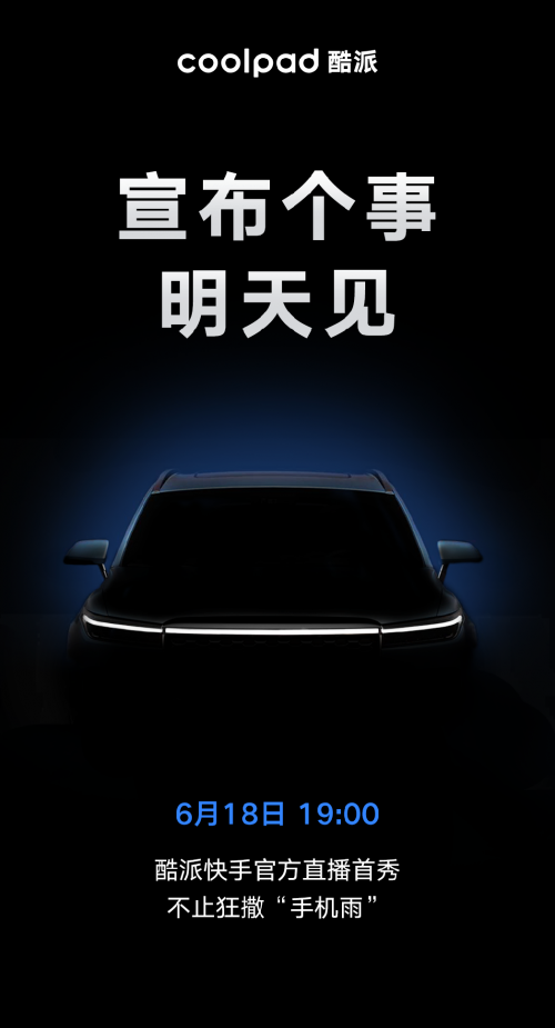 6月17日,酷派官方發(fā)布一張預(yù)熱海報(bào)。從畫(huà)面上我們得知,酷派將在618舉行官方快手官方直播首秀,直播間將會(huì)狂撒“手機(jī)雨”。 而畫(huà)面中央的汽車(chē)剪影,則讓人浮想聯(lián)翩??崤墒且燔?chē)?還是直播間會(huì)送出一輛車(chē)?