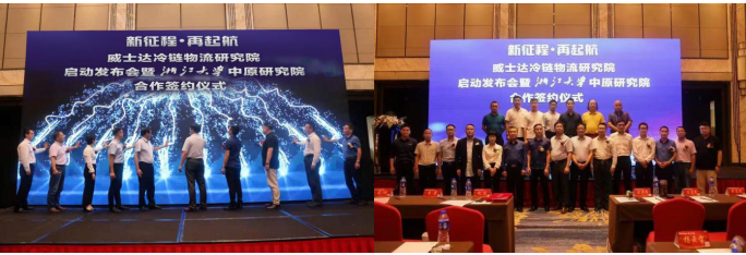 接下來,在發(fā)布會現(xiàn)場舉行了隆重的簽約儀式。首先,進(jìn)行了校企合作簽約,上海威士達(dá)冷鏈物流研究院院長陶杰先生與浙江大學(xué)中原研究院院長陳中平先生舉行了浙江大學(xué)中原研究院冷鏈物流研發(fā)中心的合作簽約儀式,通過研發(fā)中心的賦能加持,我們匯聚了大量的專業(yè)技術(shù)及資源。