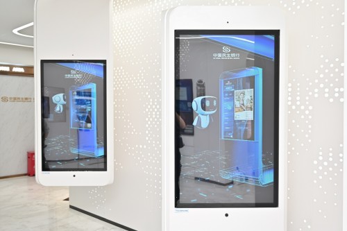 在智能體驗(yàn)區(qū)域,以引導(dǎo)式服務(wù)及體驗(yàn)達(dá)成為核心,提供即時(shí)、便捷的體驗(yàn)感受。BOE(京東方)打造的智能魔鏡充分體現(xiàn)了開(kāi)放銀行理念,具備日歷天氣信息展示、實(shí)時(shí)環(huán)境信息監(jiān)測(cè)以及重點(diǎn)財(cái)經(jīng)資訊發(fā)布等功能;互動(dòng)體驗(yàn)屏在全面保護(hù)客戶(hù)隱私的前提下,為民生銀行客戶(hù)提供個(gè)人財(cái)富健康診斷,以及融合金融和非金融場(chǎng)景的綜合化服務(wù)解決方案。