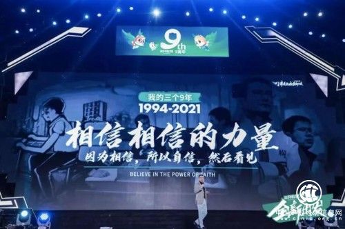 首先是結(jié)合章燎原自己的創(chuàng)業(yè)經(jīng)歷,他從1994年到2021年,27年,3個(gè)9年,拆分成三段話,就是:因?yàn)橄嘈?,所以自信,然后看?jiàn)。