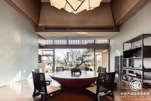 宋代黃長(zhǎng)睿所編著雜纂?yún)矔?shū)《燕幾圖》是現(xiàn)今可見(jiàn)中國(guó)最早的家具設(shè)計(jì)著作,燕幾的“矩方”設(shè)計(jì)是家具進(jìn)行功能性組合的核心思想,具有古代禮制文化的歷史特征。由燕幾圖為架構(gòu)的宋代家具使用空間增大,形式變化的可能性也變大;且家具方正簡(jiǎn)潔,格局和樣式都具有直線條美,整體造型簡(jiǎn)約大氣。李俊力依托于《燕幾圖》中心思想,結(jié)合現(xiàn)代建筑學(xué)和文人式藝術(shù)設(shè)計(jì)思維,融合當(dāng)代生活元素,將銀廬打造成清麗雅致的桃花源之境。