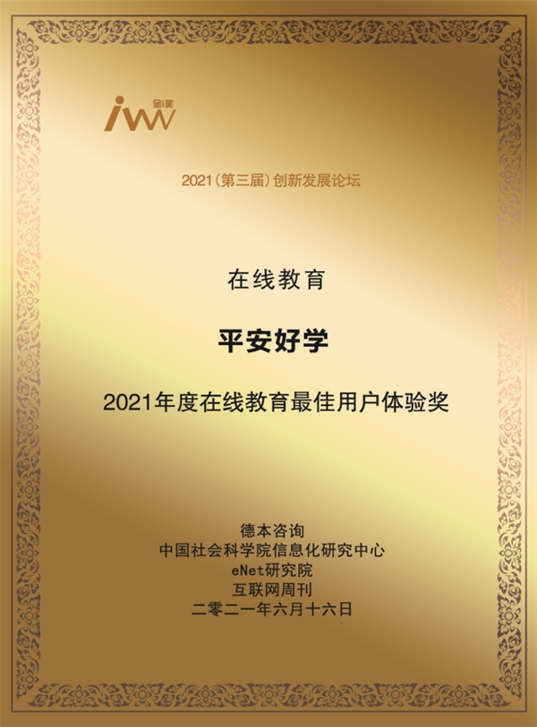 教育關(guān)乎人的成長,它不僅是成績的提高,更是知識的獲取,能力的培養(yǎng),情感的關(guān)懷和成長的陪伴。此次榮獲“2021年度在線教育最佳用戶體驗(yàn)獎”,既是對平安好學(xué)創(chuàng)新實(shí)力的再一次肯定,更是對教育行業(yè)未來發(fā)展的高度期許。