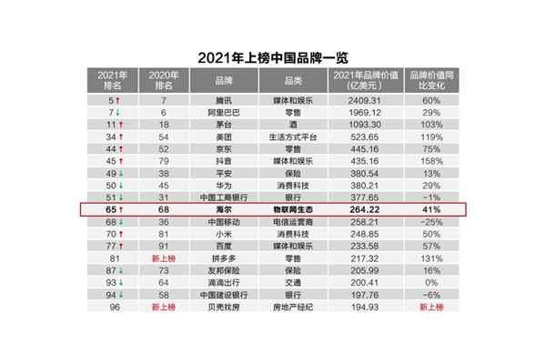 6月21日,全球知名品牌資產(chǎn)分析機(jī)構(gòu)——凱度,在戛納國際創(chuàng)意節(jié)發(fā)布了2021年“BrandZ? 最具價(jià)值全球品牌”榜單,中國海爾成為“物聯(lián)網(wǎng)生態(tài)”品牌類目下唯一上榜品牌。