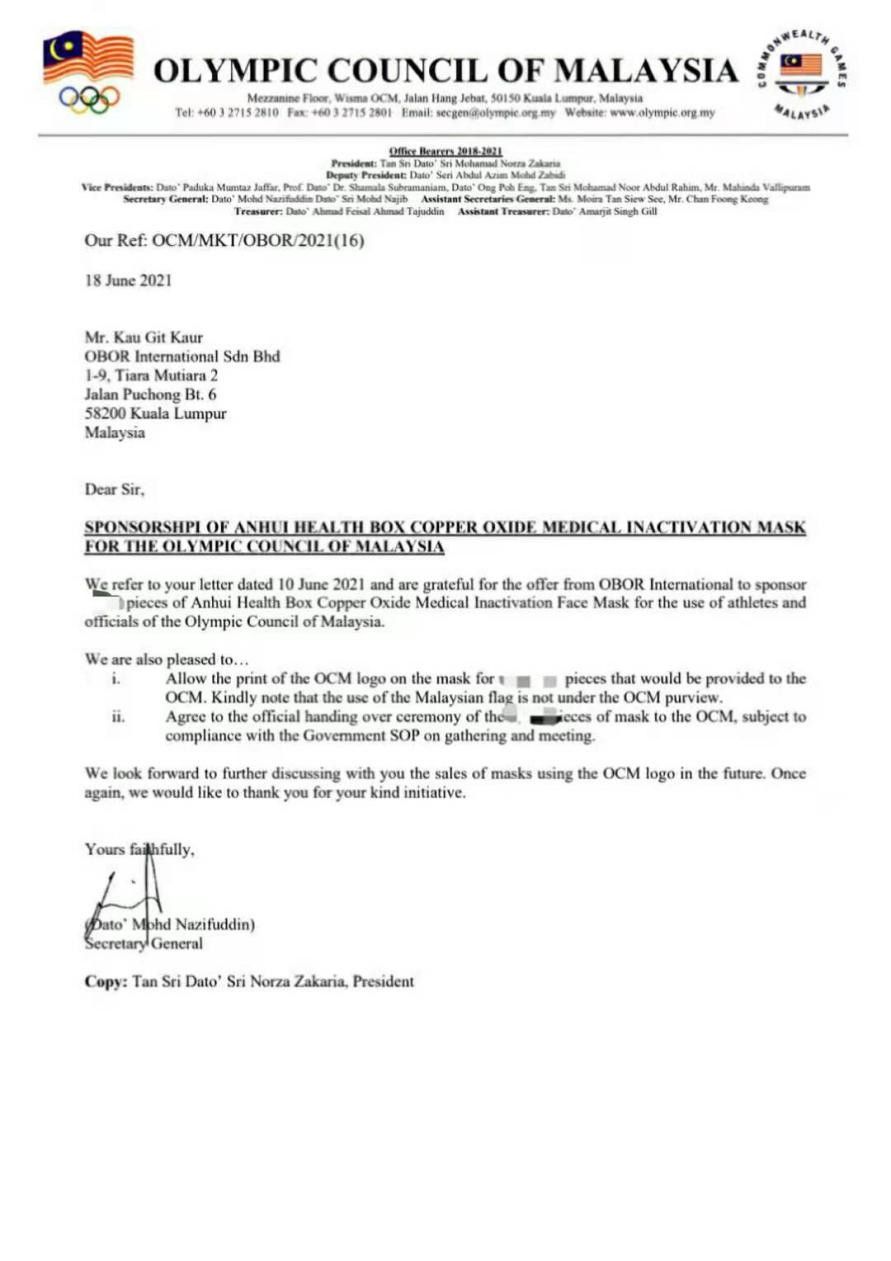 2021年6月18日,記者從馬來西亞奧組委了解到,馬來西亞東京奧運代表團(tuán)將與安徽盒子健康科技有限公司(以下簡稱“盒子健康”)正式達(dá)成東京奧運會戰(zhàn)略贊助合作,成為馬來西亞奧組委官方指定合作口罩品牌。根據(jù)協(xié)議,屆時馬來西亞數(shù)百名運動員將會佩戴盒子健康生產(chǎn)的新冠滅活醫(yī)用口罩。盒子健康作為一家大型新冠病毒滅活口罩生產(chǎn)企業(yè),此次贊助馬來西亞奧運會代表團(tuán),將會隨運動員一起出征東京奧運會,全力保障奧運健兒們的安全。