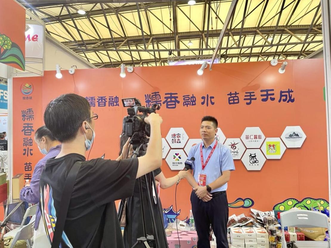 隨后,苗潤(rùn)酒業(yè)企業(yè)代表謝秀萍和融水元寶山茶葉企業(yè)代表羅靖楊以及貝江村實(shí)業(yè)負(fù)責(zé)人陳慧妍作為融水縣龍頭企業(yè)代表就各自產(chǎn)品進(jìn)行推介。