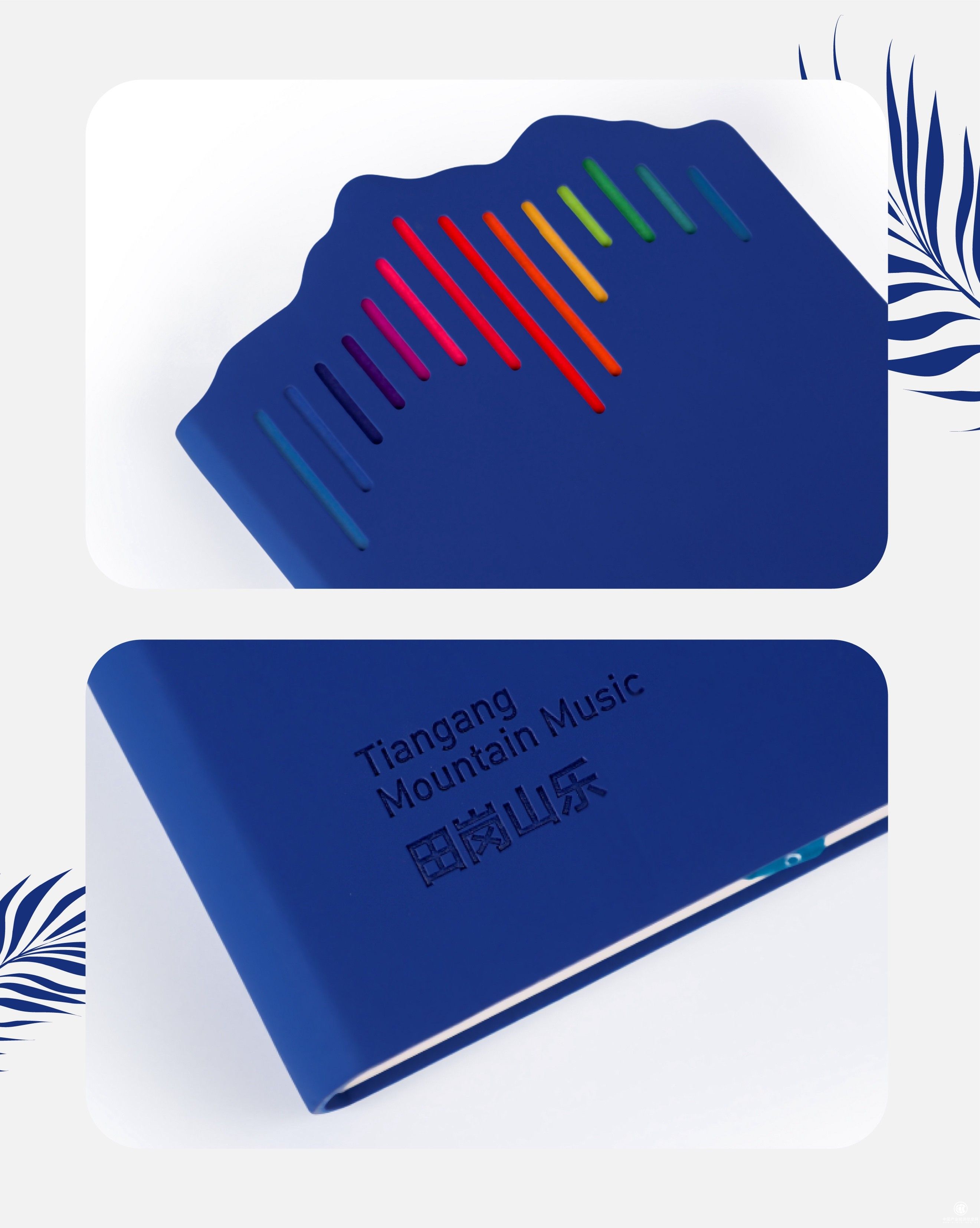首先,旅游文創(chuàng)產(chǎn)品設(shè)計(jì),既要具備實(shí)用價(jià)值的同時(shí),更要有文化的注入,搭建與消費(fèi)者生活態(tài)度相契合的精神橋梁。通常促成人們的文化消費(fèi),需要滿足知識(shí)、審美、體驗(yàn)或以上多方面綜合的精神需求。以“田崗山樂”為例,該裝置是易水三年展標(biāo)志作品之一,山形和多彩風(fēng)鈴柱融入自然,風(fēng)輕輕觸碰即發(fā)出美妙聲音。根據(jù)這個(gè)作品,圓歌開發(fā)了“田崗山樂筆記本”,山形封面、扉頁彩虹漸變色兼顧美觀,仿佛把自然裝進(jìn)筆記本,而書簽長短等則是兼顧實(shí)用。擁有“田崗山樂”筆記本,仿佛心靈與山、風(fēng)、聲相觸碰,怡然自得。