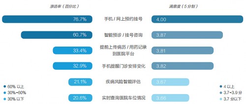 診前智慧服務的用戶滲透率和滿意度,數(shù)據(jù)來源:用戶調(diào)研