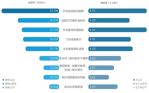 診中智慧服務的用戶滲透率和滿意度,數(shù)據(jù)來源:用戶調(diào)研