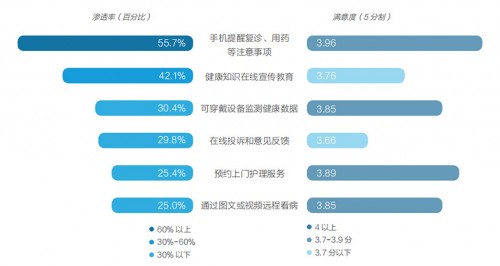 診后智慧服務的用戶滲透率和滿意度,數(shù)據(jù)來源:用戶調(diào)研