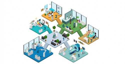 目前,越來越多的醫(yī)院開始對就醫(yī)流程進行思考,設計流程時也嘗試從以醫(yī)院為中心向以患者為中心轉(zhuǎn)換,并靈活引入智慧服務以提升患者體驗。近年來,新建醫(yī)院尤其重視對就醫(yī)流程的優(yōu)化,引入“一體化診區(qū)”和“中心制醫(yī)院”等先進理念,在智慧服務上做出了不少創(chuàng)新。以京東方醫(yī)院為例,其門診各層均設計了可提供一站式就醫(yī)服務的一體化診區(qū),診區(qū)內(nèi)設置診間、藥房、采血處等單元?;颊邚膾焯柪U費、生命體征測量、候診就診,再到心電檢查、檢驗采血、領取報告及取藥等全流程均可在一體化診區(qū)完成,極大縮短了無效流動的距離。
