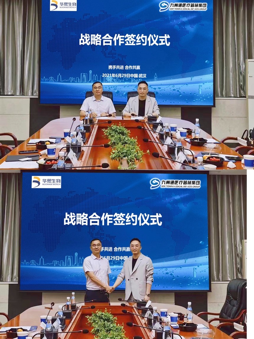 2021年6月29日下午,中國藥品零售市場第一大配送商九州通醫(yī)療器械集團(tuán)有限公司(以下簡稱“九州通”)與華熙生物科技股份有限公司(以下簡稱“華熙生物”)在武漢市九州通總部舉行戰(zhàn)略合作簽約儀式。