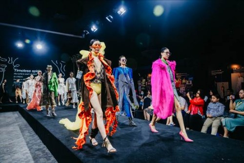 服裝秀展出的是來自FD時尚設(shè)計專業(yè)學(xué)生的設(shè)計作品共50余套,由FMM時尚管理專業(yè)學(xué)生統(tǒng)籌負(fù)責(zé)整場表演從策劃、籌備到現(xiàn)場演出的全過程。作品各成系列,風(fēng)格迥異,工藝講究,將思想融入服裝,將個人特色融于設(shè)計手法,在聚光燈的映射下熠熠生輝。