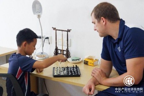 常州威雅的老師與孩子們?cè)谒奚醿?nèi)下棋