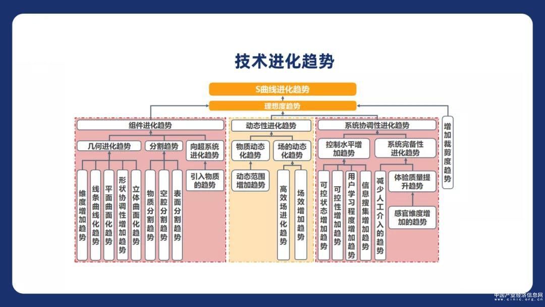 舉例來說,外部物質(zhì)的貼合-包裹-鑲嵌-內(nèi)嵌-分割內(nèi)嵌-融合,這是引入物質(zhì)趨勢;直接控制-自動(dòng)化控制-反饋系統(tǒng)-智能反饋系統(tǒng),這是可控性增加趨勢;單體-雙體-多體-復(fù)雜多體,這是向超系統(tǒng)進(jìn)化趨勢。