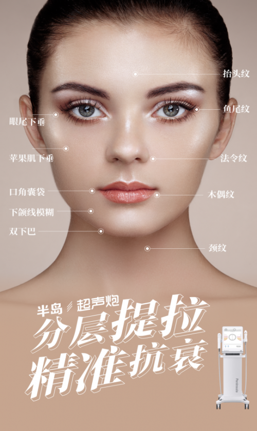 【半島超聲炮,解決皮膚松弛、下垂、皺紋等問題】
