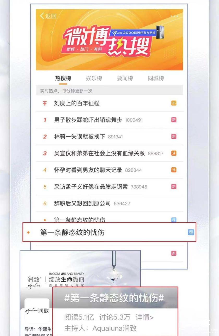 針對(duì)皺紋中更為頑固的靜態(tài)紋,潤(rùn)致在微博發(fā)起了#第一條靜態(tài)紋的憂傷#討論話題,并且由多領(lǐng)域的達(dá)人們帶頭喊出態(tài)度宣言,引領(lǐng)大眾關(guān)注自己的面部“紋”題。而當(dāng)達(dá)人的影響力逐漸擴(kuò)散時(shí),品牌方又適時(shí)地邀請(qǐng)了醫(yī)美達(dá)人張沫凡前往品牌大本營(yíng)華熙生物大樓探訪,借助張沫凡的視頻講解,令大眾了解到靜態(tài)紋是可以祛除的,并且展示了華熙生物強(qiáng)大的科技實(shí)力。
