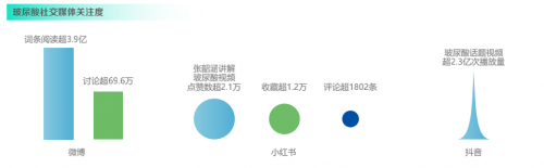 京東超市發(fā)布的《2021水飲行業(yè)創(chuàng)新趨勢(shì)報(bào)告》中指出,從社交媒體上來(lái)看,玻尿酸已經(jīng)逐漸走熱,無(wú)論是微博、小紅書(shū)或是抖音,玻尿酸均有相當(dāng)討論度。小紅書(shū)有關(guān)“玻尿酸”的筆記已經(jīng)超過(guò)53W,商品數(shù)量也超過(guò)了1W。而搜索“玻尿酸飲料”筆記也超過(guò)了2500篇,“肌膚真的可以變好”“元?dú)馑饧〉拿孛堋钡仁遣D蛩犸嬃系闹鞔蚬πА?/p>