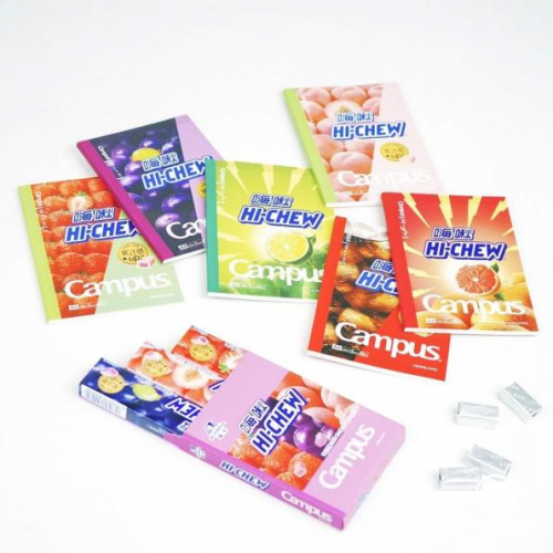 Campus的本子結(jié)合嗨啾的最新包裝,以水蜜桃、草莓、西柚、葡萄、青檸、可樂等元素,給予了消費者們最佳視覺沖擊。