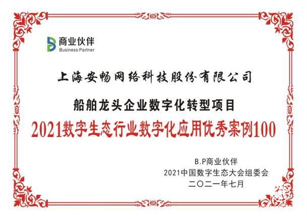 ▲安暢網(wǎng)絡榮獲“2021數(shù)字生態(tài)行業(yè)數(shù)字化應用優(yōu)秀案例100強”