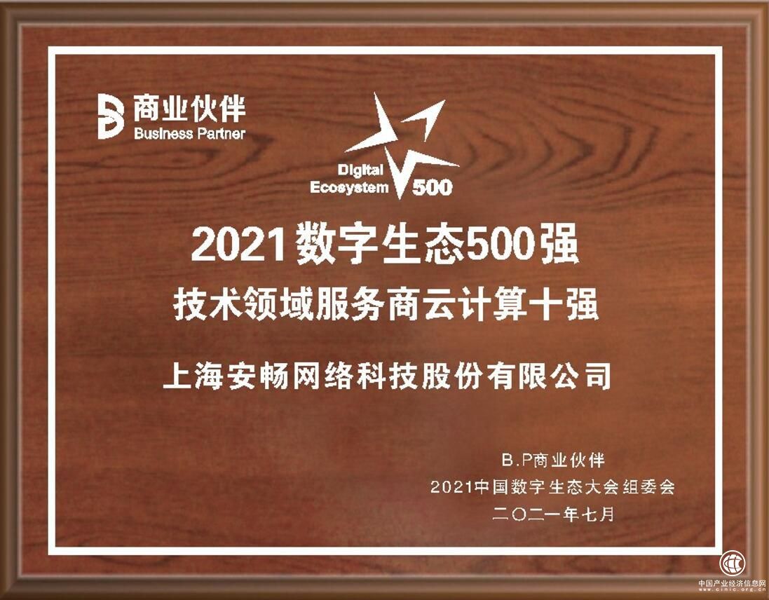 ▲安暢網(wǎng)絡榮獲“2021數(shù)字生態(tài)500強”