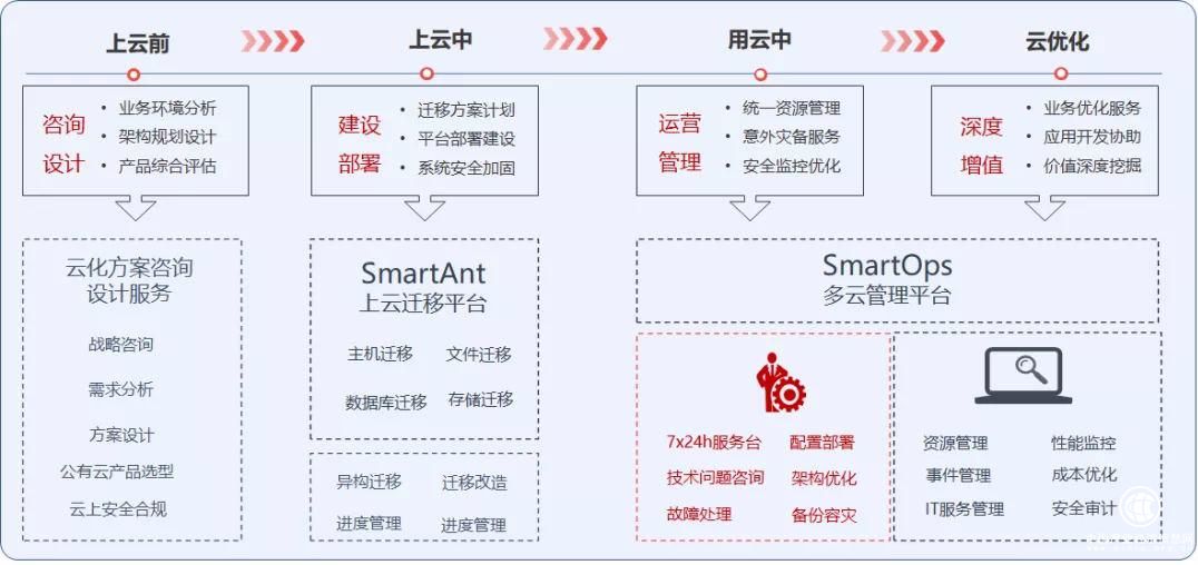 安暢以“上好云、用好云、管好云“為使命,基于“專家團隊+智能云管理平臺+先進的管理體系”,為客戶提供從咨詢、遷移、運維管理、云優(yōu)化到敏捷開發(fā)的全生命周期云管理服務,根據(jù)客戶的應用場景和痛點提供定制化解決方案,深度挖掘數(shù)據(jù)價值,助力客戶實現(xiàn)智能決策,持續(xù)進行云上業(yè)務創(chuàng)新。