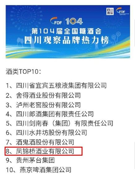 在這場(chǎng)美酒加美食的盛宴里,來(lái)自全國(guó)各地?cái)?shù)千家品牌、累計(jì)萬(wàn)余種產(chǎn)品匯聚于此,組委會(huì)與四川觀察聯(lián)合發(fā)起了《2021糖酒會(huì)品牌(部分)熱力榜》網(wǎng)絡(luò)評(píng)選活動(dòng)。此次活動(dòng)累計(jì)訪問(wèn)量達(dá)167萬(wàn)次+,累計(jì)投票量達(dá)82萬(wàn)次+,分享朋友圈和朋友轉(zhuǎn)發(fā)數(shù)共計(jì)近萬(wàn)次。在上百萬(wàn)用戶規(guī)模的評(píng)選中,鳳錦橋酒業(yè)榮獲酒類品牌熱力榜Top8。