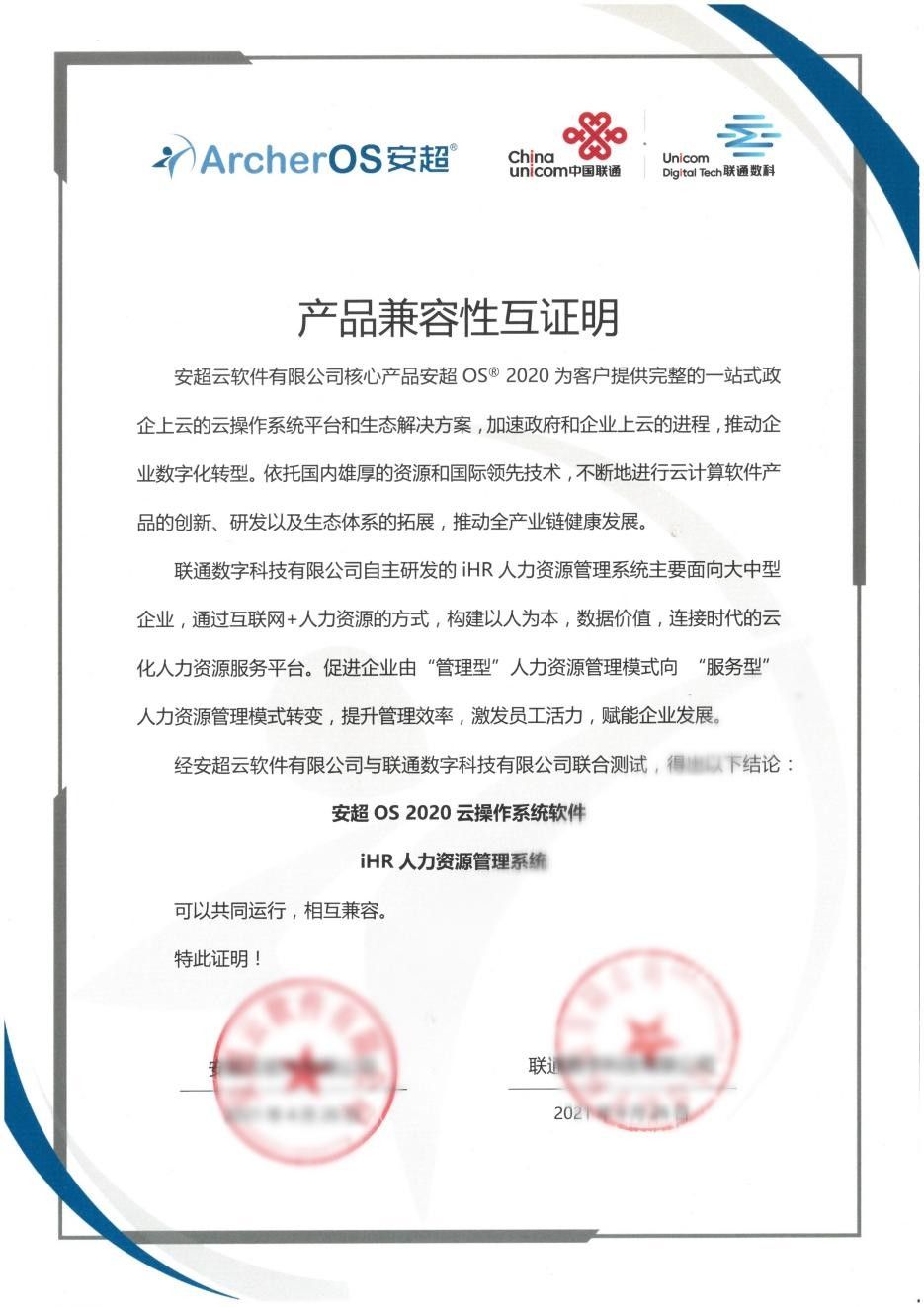 日前,為更好的推動用戶數(shù)字化轉型升級,國產通用型云操作系統(tǒng)安超OS 2020與聯(lián)通數(shù)科的iHR人力資源管理系統(tǒng)完成產品兼容性互認證。本次兼容性互認證經華云數(shù)據與聯(lián)通數(shù)科聯(lián)合測試得出:產品相互兼容,系統(tǒng)功能運行穩(wěn)定,體驗良好,能夠滿足更多用戶需要。