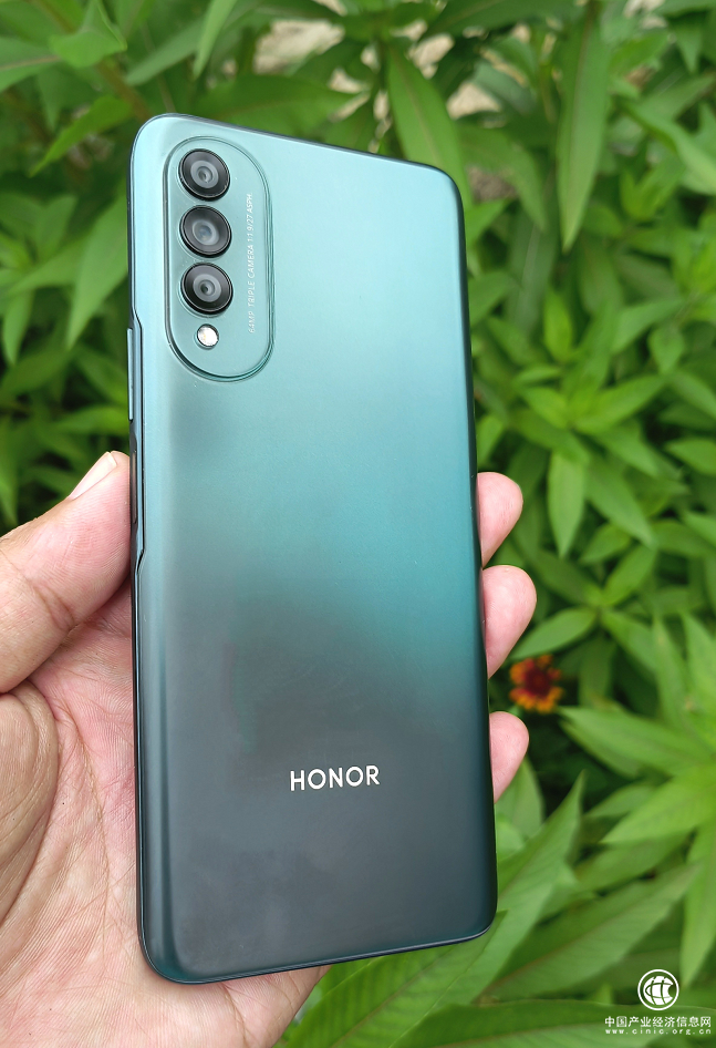 榮耀X20 SE在外形設(shè)計層面,依然主攻年輕潮流,四大配色分別為幻夜黑、藍水翡翠、鈦空銀、櫻粉金,入手測評的這款是藍水翡翠,雖說是藍水,但其實還是翡翠般的幽綠色調(diào),玻璃的機身質(zhì)地,有著波光粼粼的通透感。加以高壓注塑的3D工藝,摸在手里的質(zhì)感和顏值不相上下,溫潤又細膩,帶著一絲磨砂感,可以避免指紋手汗留下印記。