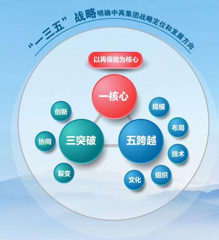 回首“十三五”初期,中再集團(tuán)改革發(fā)展站在新的歷史路口,挑戰(zhàn)重重,也蘊(yùn)含機(jī)遇。2016年,在新一屆黨委班子的領(lǐng)導(dǎo)下,經(jīng)過集中攻關(guān)、反復(fù)研討,最終凝聚共識(shí),形成“一三五”戰(zhàn)略并貫徹始終。明確了“中再姓再”一個(gè)核心,致力在“創(chuàng)新、協(xié)同、裂變”三方面突破,實(shí)現(xiàn)“規(guī)模、布局、技術(shù)、組織、文化”五個(gè)領(lǐng)域的跨越。2019年,中再集團(tuán)提出“以平臺(tái)化、科技化和全球化為戰(zhàn)略落地的支點(diǎn)和抓手,加快高質(zhì)量發(fā)展轉(zhuǎn)型,實(shí)現(xiàn)整體價(jià)值穩(wěn)健增長(zhǎng)”的戰(zhàn)略主張。