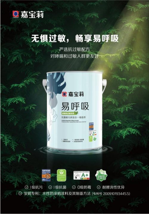 鑒于市場需求趨勢與涂料行業(yè)技術和產(chǎn)品迭代升級的要求,2020年8月嘉寶莉提出“易呼吸”產(chǎn)品概念,研發(fā)創(chuàng)新型抗過敏配方,專為易敏人群設計。并于今年6月推出高品質(zhì)環(huán)保產(chǎn)品——易呼吸過敏友好抗菌耐污多效合一墻面漆,為打造高質(zhì)量醫(yī)療空間再添助力。