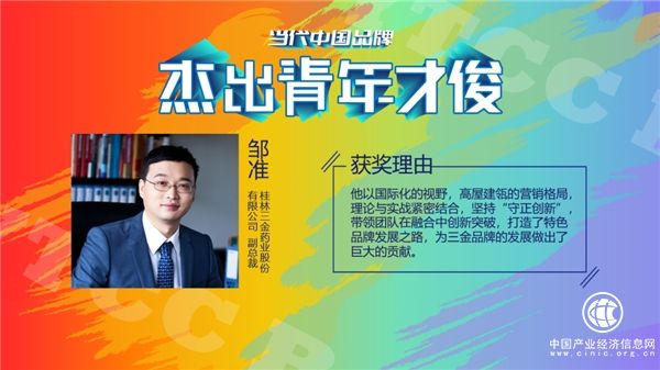 在Y2Y品牌年輕節(jié)盛典上,企業(yè)、人物、案例各大獎(jiǎng)項(xiàng)名單逐一揭曉,桂林三金藥業(yè)股份有限公司副總裁鄒準(zhǔn)先生榮獲青年才俊人物獎(jiǎng)項(xiàng),在青年才俊人物獎(jiǎng)的評(píng)審中,鄒準(zhǔn)先生受到評(píng)委一致認(rèn)可,并給予了高度贊揚(yáng)。從弘揚(yáng)中醫(yī)藥文化到品牌創(chuàng)新營(yíng)銷,鄒準(zhǔn)先生帶領(lǐng)團(tuán)隊(duì)在融合中創(chuàng)新突破,助力桂林三金品牌年輕化、特色化發(fā)展。