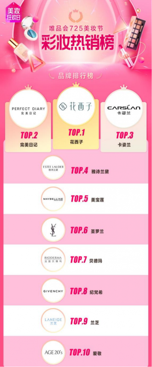 近期,唯品會(huì)725美妝節(jié)拉開(kāi)了帷幕,而后伴隨而來(lái)的就是唯品會(huì)官方發(fā)布的彩妝熱銷(xiāo)榜。隨著平臺(tái)上各彩妝品牌的權(quán)威成績(jī)單揭開(kāi),許多消費(fèi)者不禁發(fā)出疑問(wèn),到底是哪家的美妝產(chǎn)品在唯品會(huì)上如此火熱?有沒(méi)有咱們?cè)谄渲胸暙I(xiàn)一份力?對(duì)于這些疑問(wèn),小編接下來(lái)就來(lái)揭曉答案。