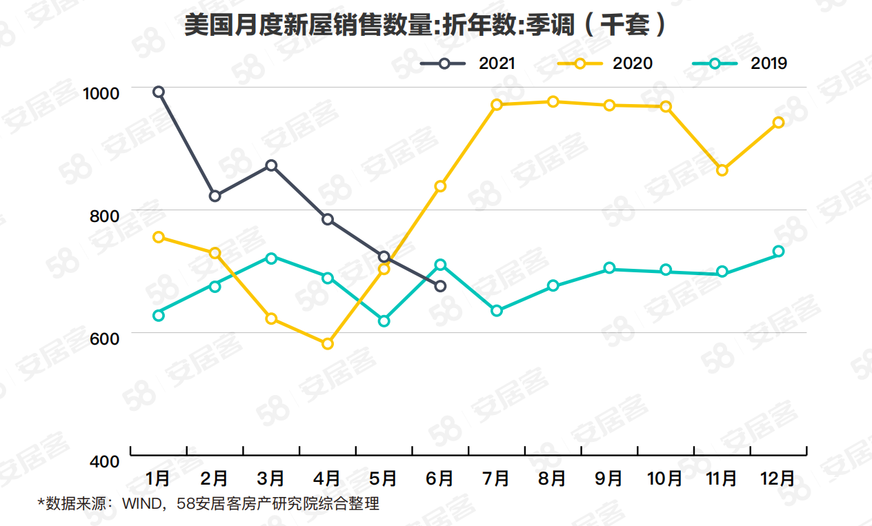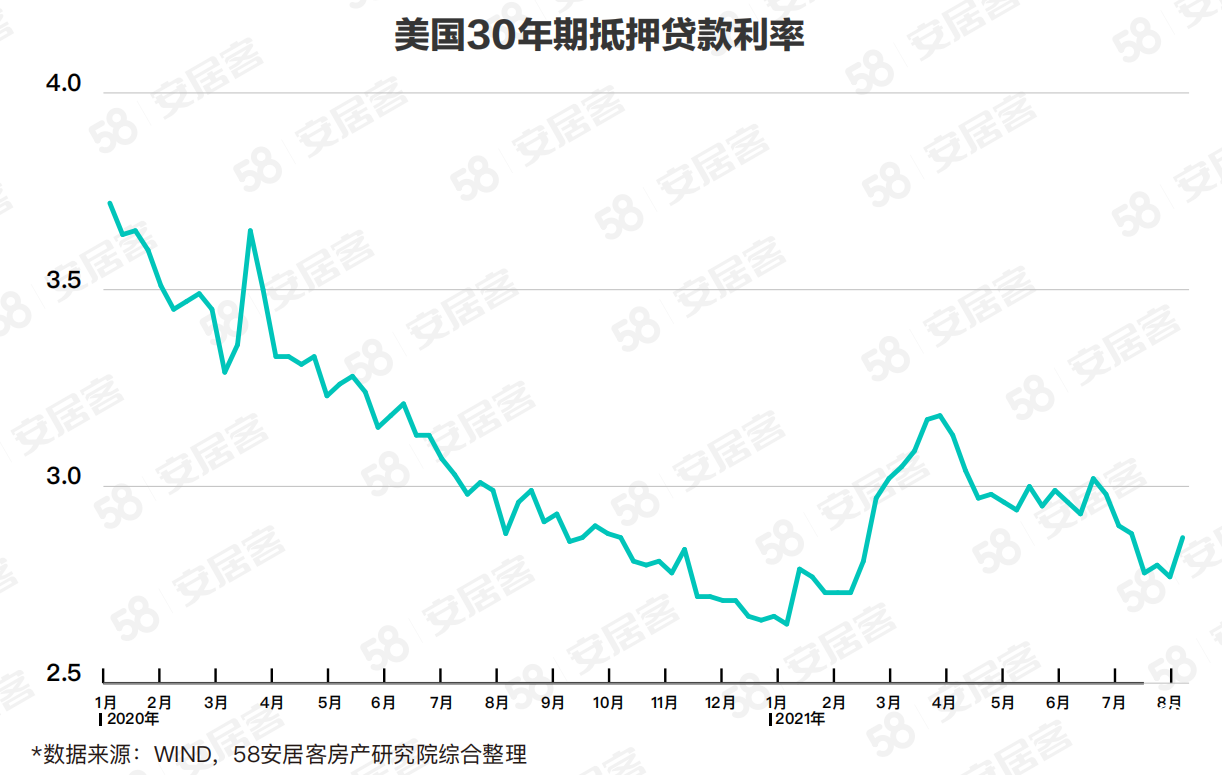 針對本輪美國房產熱背后的原因和影響因素,58安居客房產研究院分析表示,疫情發(fā)生后美國房地產價格飆升的重要原因之一,是受到美聯(lián)儲緊急降息等量化寬松政策的影響。去年3月,為應對疫情帶來的恐慌,美聯(lián)儲采取了 “零利率+天量QE”的危機模式組合,30年期的抵押貸款固定利率不斷下降,去年12月最后一周降至2.66%的歷史低點。低利率環(huán)境促使?jié)撛谫彿空呒铀偃胧?,疊加冬季假期極低的市場庫存引發(fā)房地產競購戰(zhàn),成交量價齊升。