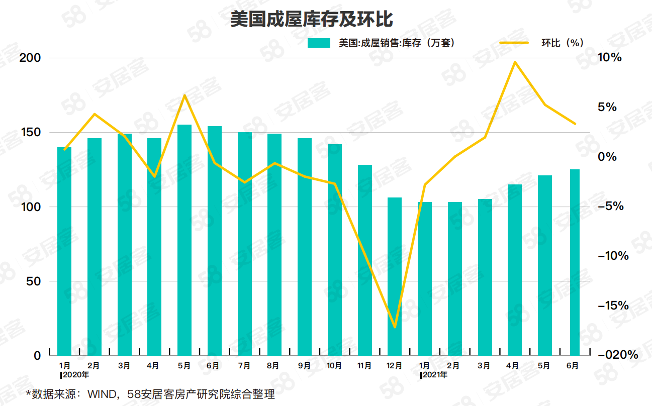縱觀美國房產市場整體走勢,根據美國房地產在線掛牌網站Redfin的最新調研數據顯示,6月份美國新增77.6萬套房屋掛牌,同比增長8%;在線掛牌房屋成交71.7萬宗,同比增長20.6%,其中56.4%的房屋最終售價高于掛牌價,同比增長近30%;最終售價與掛牌價的比例為102.6%;掛牌房屋在市場上停留時間的中位數為14天,比去年6月減少25天;在線掛牌的房屋數量為75.7萬套,同比減少39.6%,按當前銷售速度,可滿足1.1個月的市場需求。