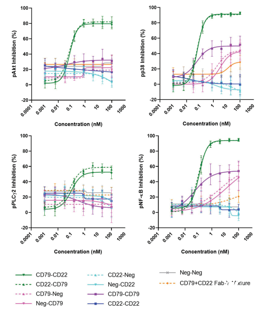 后續(xù)雙特異性分子/抗體篩選驗證證實,CD79A/B和CD22可作為人B細胞活化的有效抑制劑靶點,用于系統(tǒng)性紅斑狼瘡相關(guān)藥物開發(fā)。