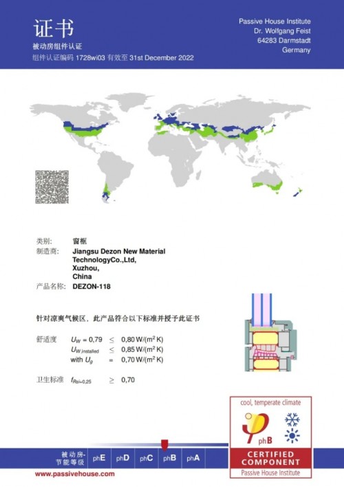 5、保溫隔熱性能優(yōu)越 經(jīng)過德國PHI被動認證 德重低碳鋁木系統(tǒng)門窗整窗U值可達0.79W/(m2L)