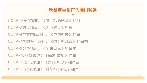 狄耐克央視廣告播出頻道