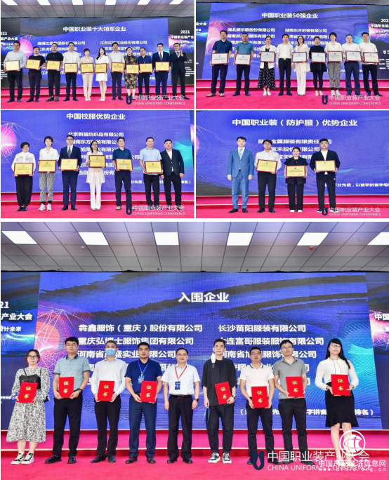 第三屆中國(guó)職業(yè)裝優(yōu)勢(shì)企業(yè)評(píng)價(jià)推介活動(dòng)評(píng)審結(jié)果現(xiàn)場(chǎng)揭曉,入選“中國(guó)職業(yè)裝十大領(lǐng)軍企業(yè)”、“ 中國(guó)職業(yè)裝五十強(qiáng)企業(yè)”、“ 中國(guó)校服優(yōu)勢(shì)企業(yè)”、“ 中國(guó)職業(yè)裝(防護(hù)服)優(yōu)勢(shì)企業(yè)”、“ 入圍企業(yè)”名單的企業(yè)代表先后上臺(tái)領(lǐng)獎(jiǎng),感受屬于自己的榮耀時(shí)刻。
